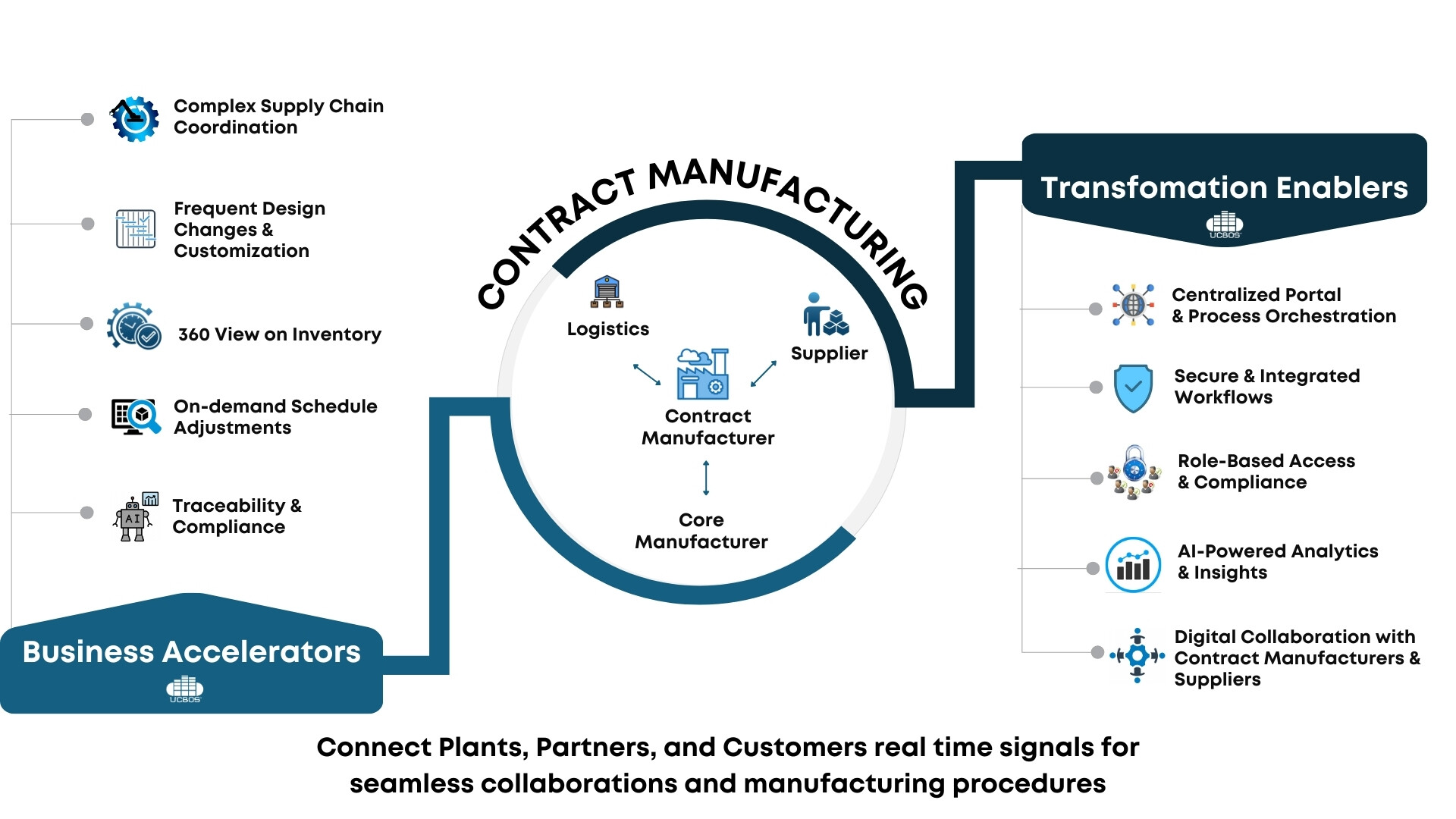 UCBOS is a strong contract manufacturing solution due to its centralized platform and its features, including end-to-end supply chain traceability, real-time supplier collaboration, automated production scheduling, and AI-powered demand forecasting; all of which promote seamless, transparent, and streamlined manufacturing operations. The transformation enablers, data driven insights, and a comprehensive distribution network enable efficiency and decision-making across the entire contract manufacturing process.