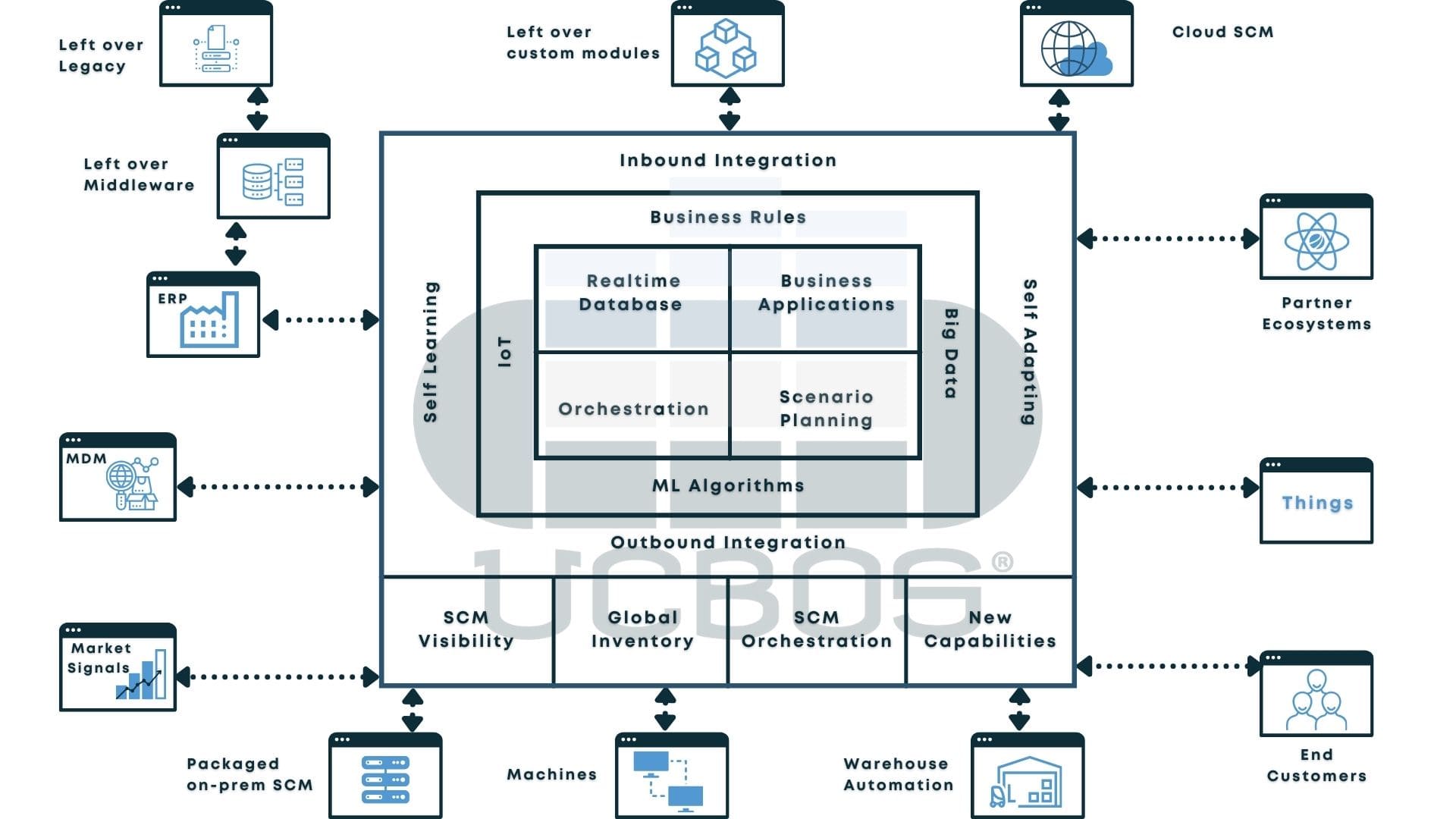 The UCBOS extension complements traditional best-of-breed on-prem solutions, cloud solutions, machines, and things in an unprecedented way and empowers enterprises to manage their dynamic and time-sensitive business needs without technology barriers.